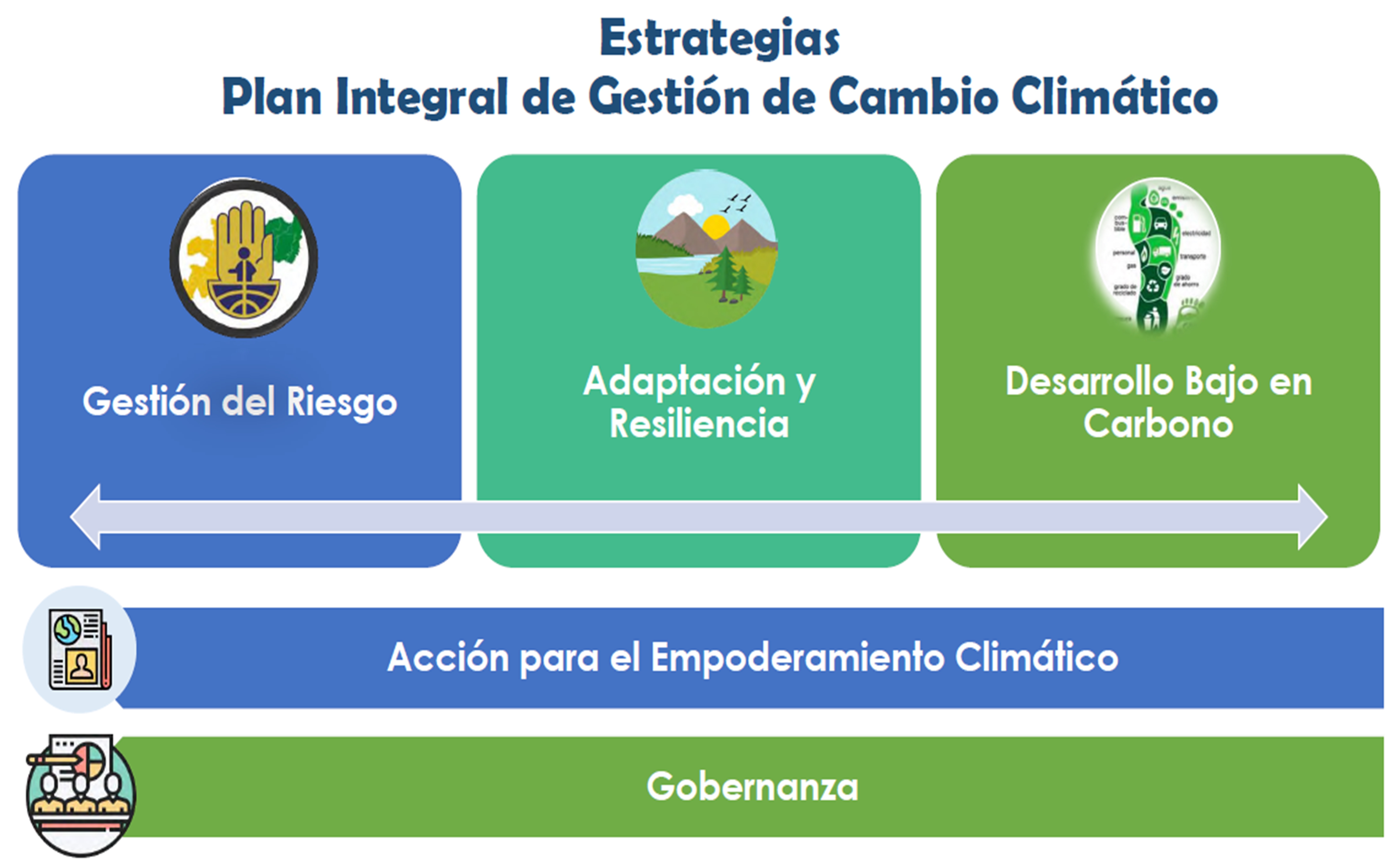 El PIGCC de Caldas se agrupa en cinco (5) Estrategias interdependientes que pretenden conformar un plan efectivo para influir en la toma de decisiones sectoriales, del desarrollo y de la planificación del territorio, con el fin de avanzar en el desarrollo resiliente al clima y bajo en carbono.