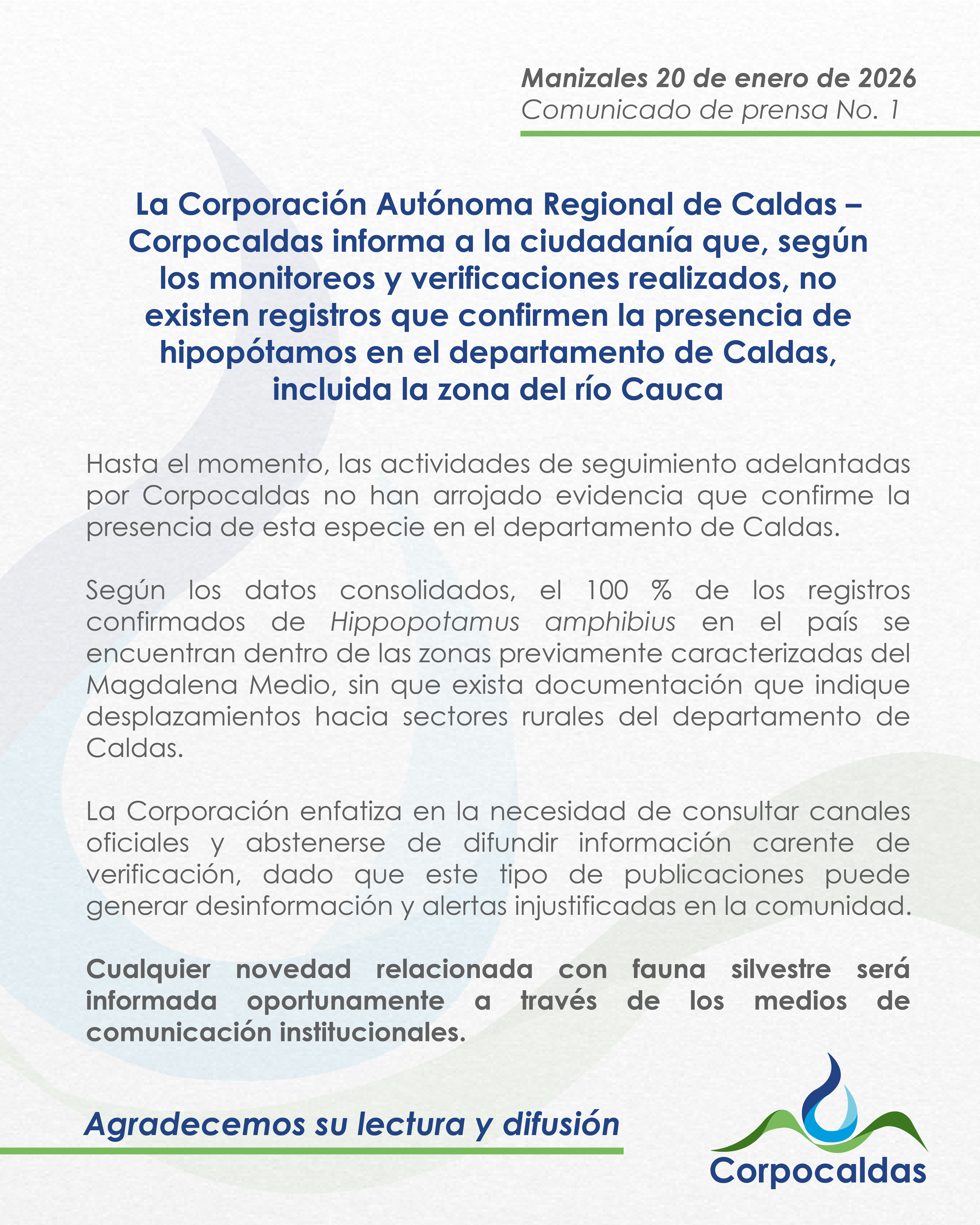 Corpocaldas niega presencia de hipopótamos en Caldas