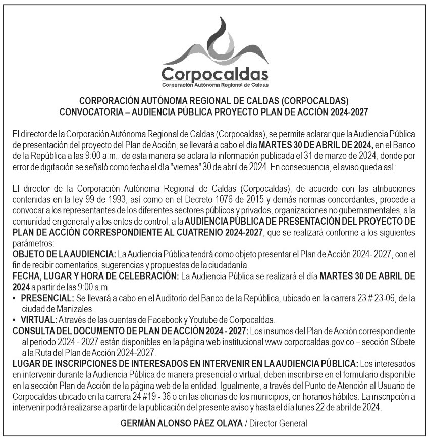 Convocatoria - Audiencia Pública Proyecto Plan de Acción 2024-2027
